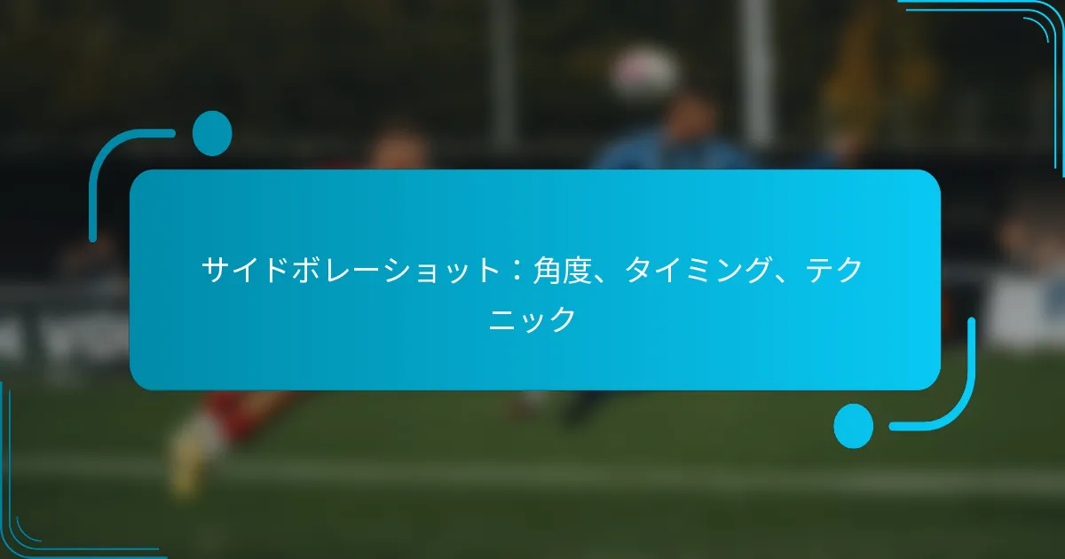サイドボレーショットの適切なタイミングは、成功したプレーを実行するために重要です。ボールを打つ最適な瞬間を認識し、自分の位置がボールの軌道とバウンドに合致することを確認することが含まれます。このタイミングをマスターすることで、コートでのパフォーマンスが大幅に向上します。